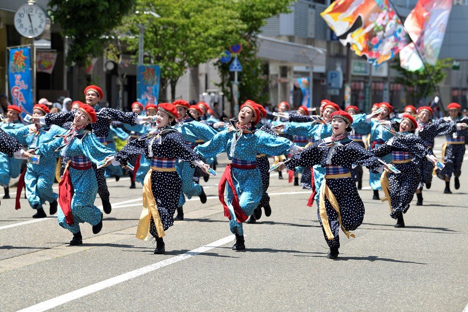 市内外から「よさこい」サークルが集まり、にこにこ通り・ぴっから通り・えんま通りを華麗な演舞で彩ります。