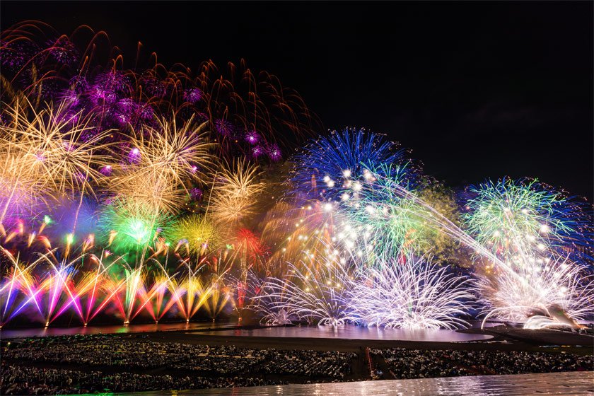 1日で様々な種類の花火が15,000発も打ち上がる。