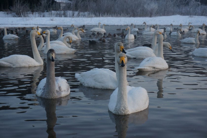 西山町の長嶺大池では、冬季は白鳥の他、ホシハジロ、コガモ、カルガモなどの野鳥観察をすることができます。今年も多くの野鳥がやってきました~(^^)