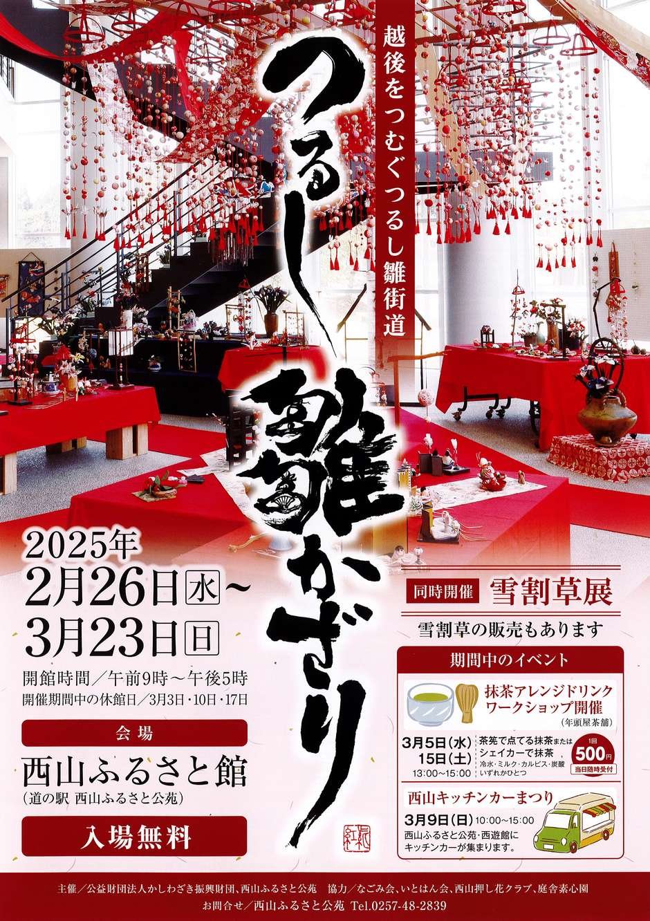 春の訪れを感じる「つるし雛かざり」の展示会が、西山ふるさと館で行われます♪