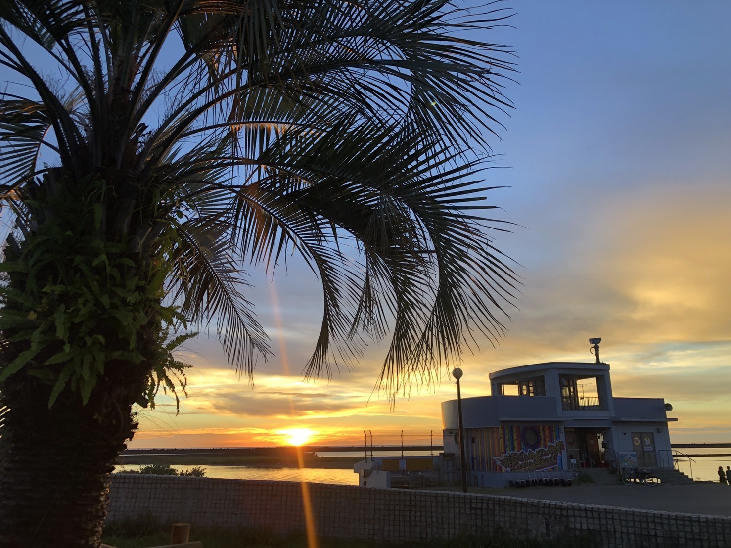 「みなとまち海浜公園」の海の先にひときわ目立つレインボーカラーにペイントされた建物を発見。シンボルツリーのヤシの木と青い空、キラキラ光る海がまるでアメリカ西海岸を思わせる景色。こちらが2年前にオープンした「かしわざきセントラルビーチ」。みなとまち海浜公園内でバーベキュー、キャンプができるエリアになっています。