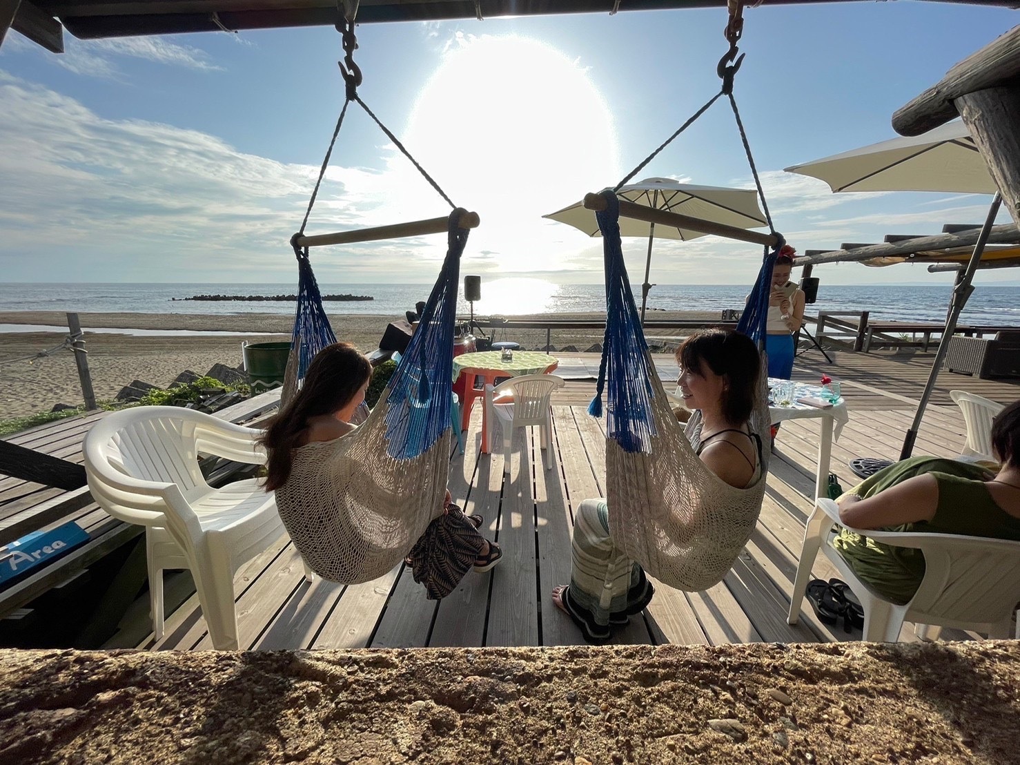 夏はもちろん海水浴。海の家としての利用は更衣室やコインシャワーもあるので安心。目の前に広がる海でたっぷり遊んだ後はドリンク片手にのんびりと海を眺めてくつろいだり、お昼寝だってOK。サンセットタイムにはSUPレンタルで海さんぽ。海の中を泳ぐ魚たちを眺めたり、海の上で夕日に包まれ癒されるひとときは最高の瞬間です。