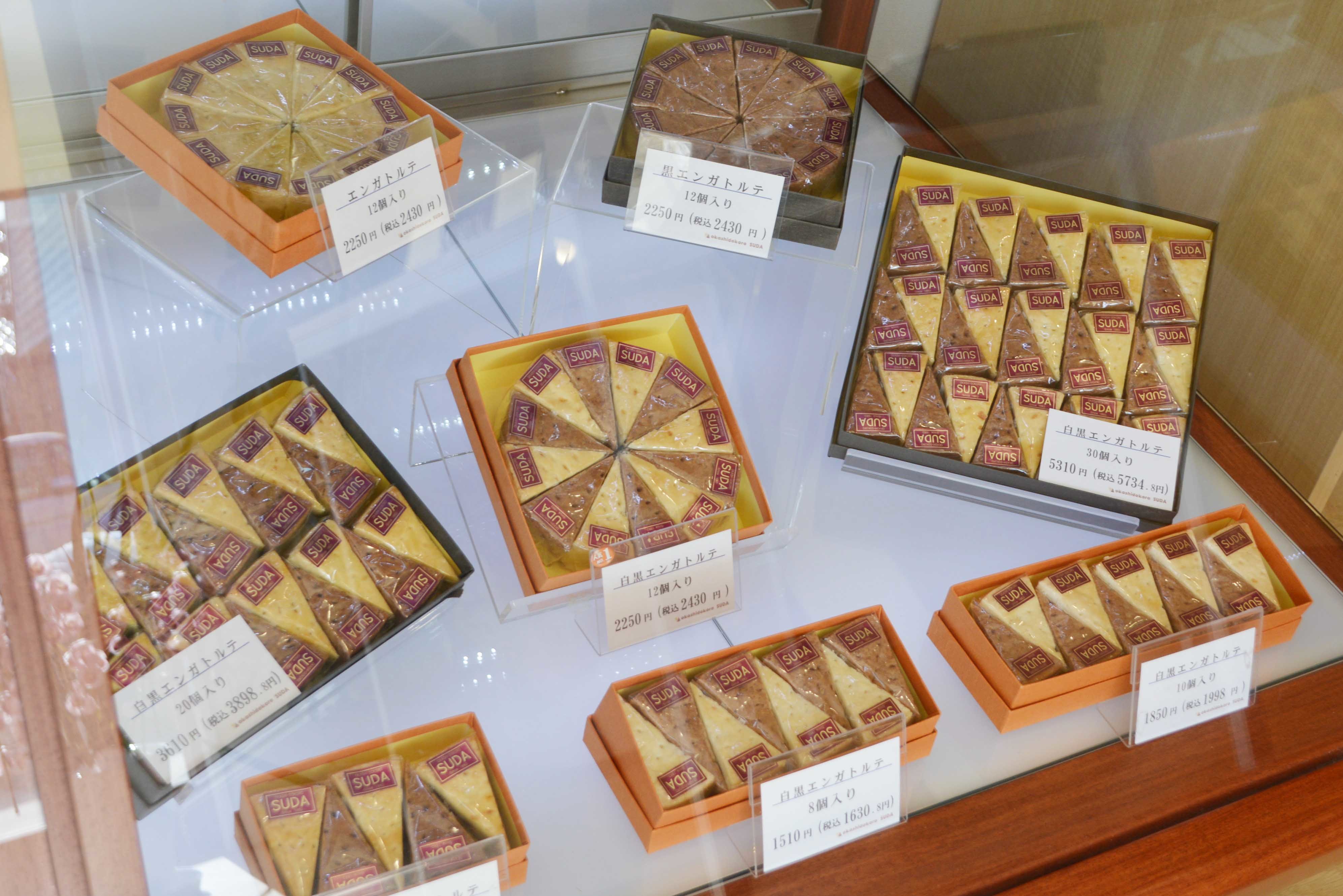 「エンガトルテ」とココア生地にラムレーズンがプラスされた「黒エンガトルテ」、2種の「白・黒エンガトルテ」が定番。その他に、限定として2月から3月の「エンガトルテ リッチショコラ」、5月~6月限定の「紅茶のエンガトルテ」、10月から11月限定の「栗エンガトルテ」、他に「りんご」「抹茶」「ゆず紅茶」など、期間限定のエンガトルテがあり、実はバリエーションも豊富なのです。