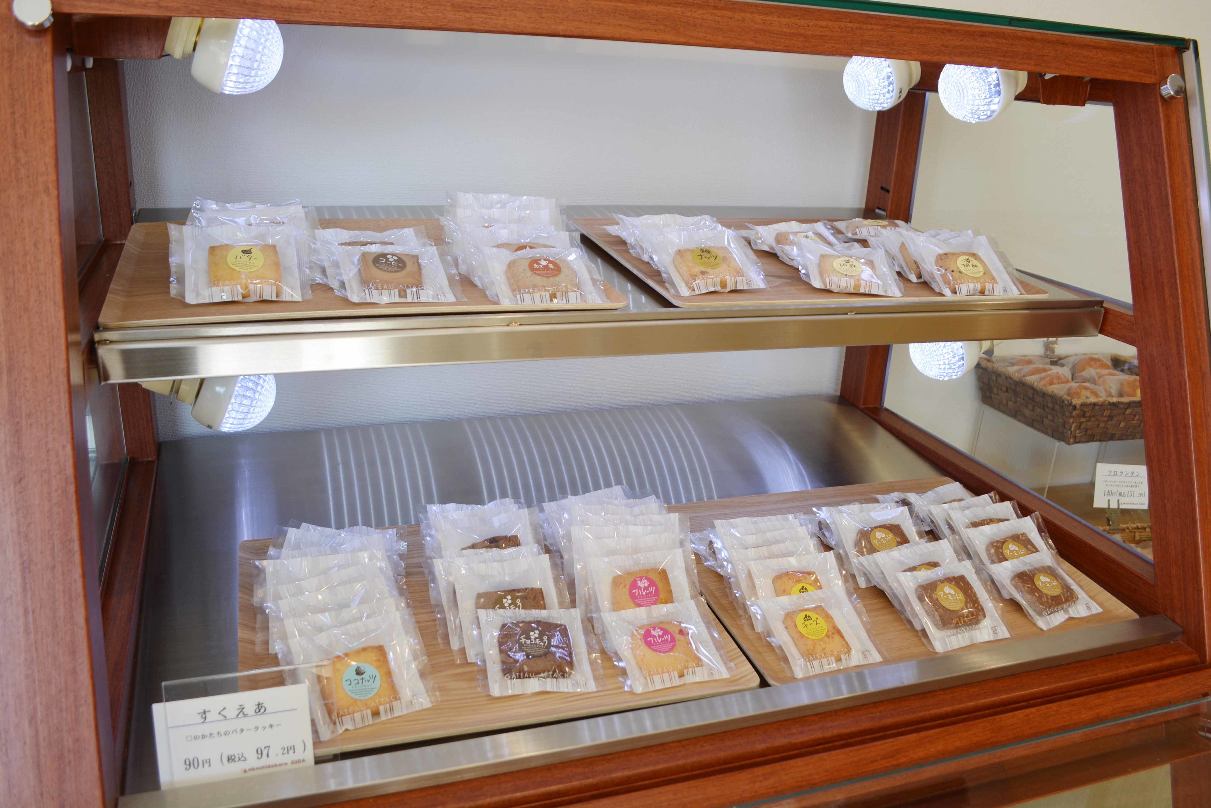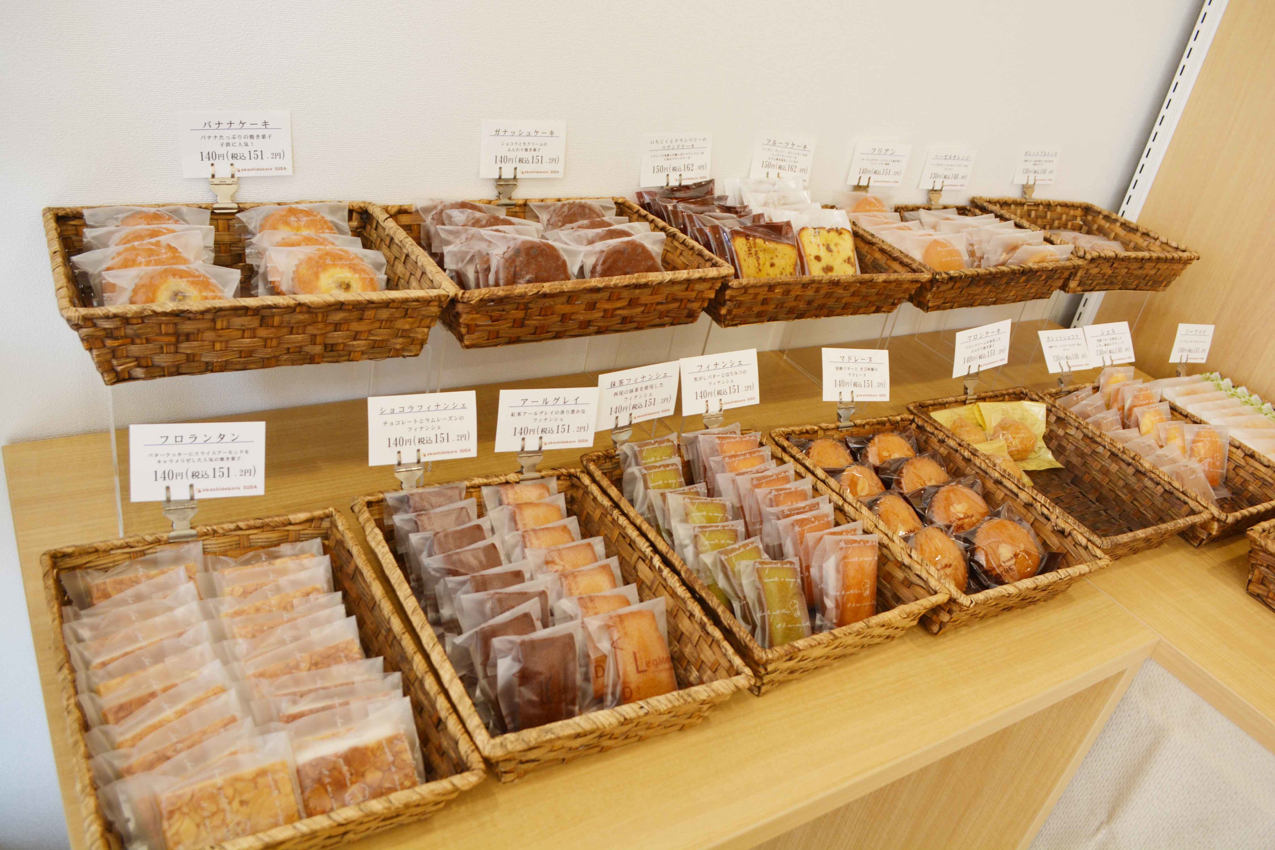外観は、エンガトルテをイメージしたような可愛らしくて温かな雰囲気。店内に入ると、エンガトルテのほか、柏崎産米粉を使用した焼ドーナツの「こめまる」や、「すくえあクッキー」、「フロランタン」、「マドレーヌ」や「フィナンシェ」、「フルーツケーキ」などの焼き菓子・洋菓子がずらりと並んでいます。
