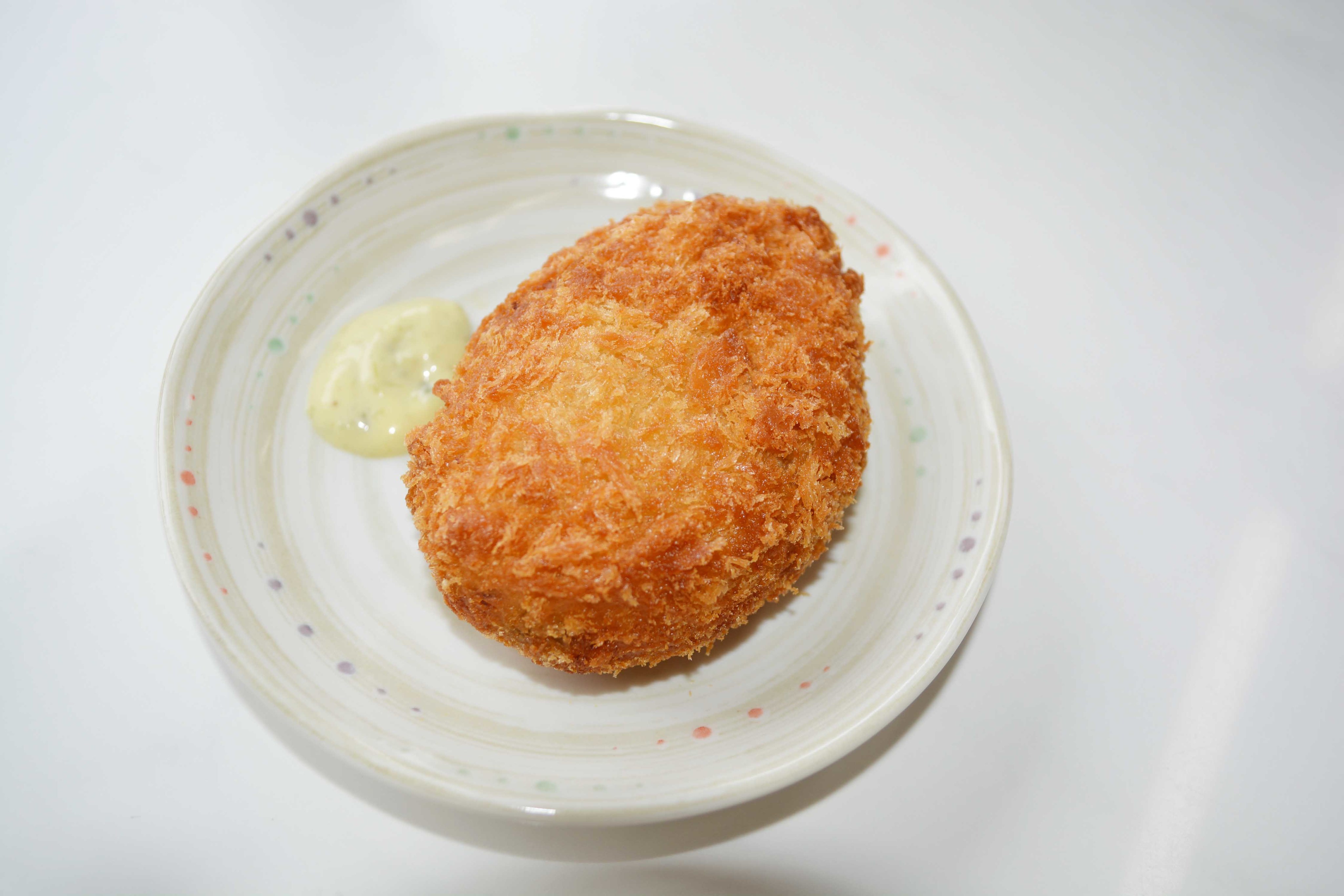 わさびの葉と茎が入っているコロッケはおやつ感覚で!手作りでサクサクのコロッケはわさびマヨネーズをつけるとさらに風味もアップ。