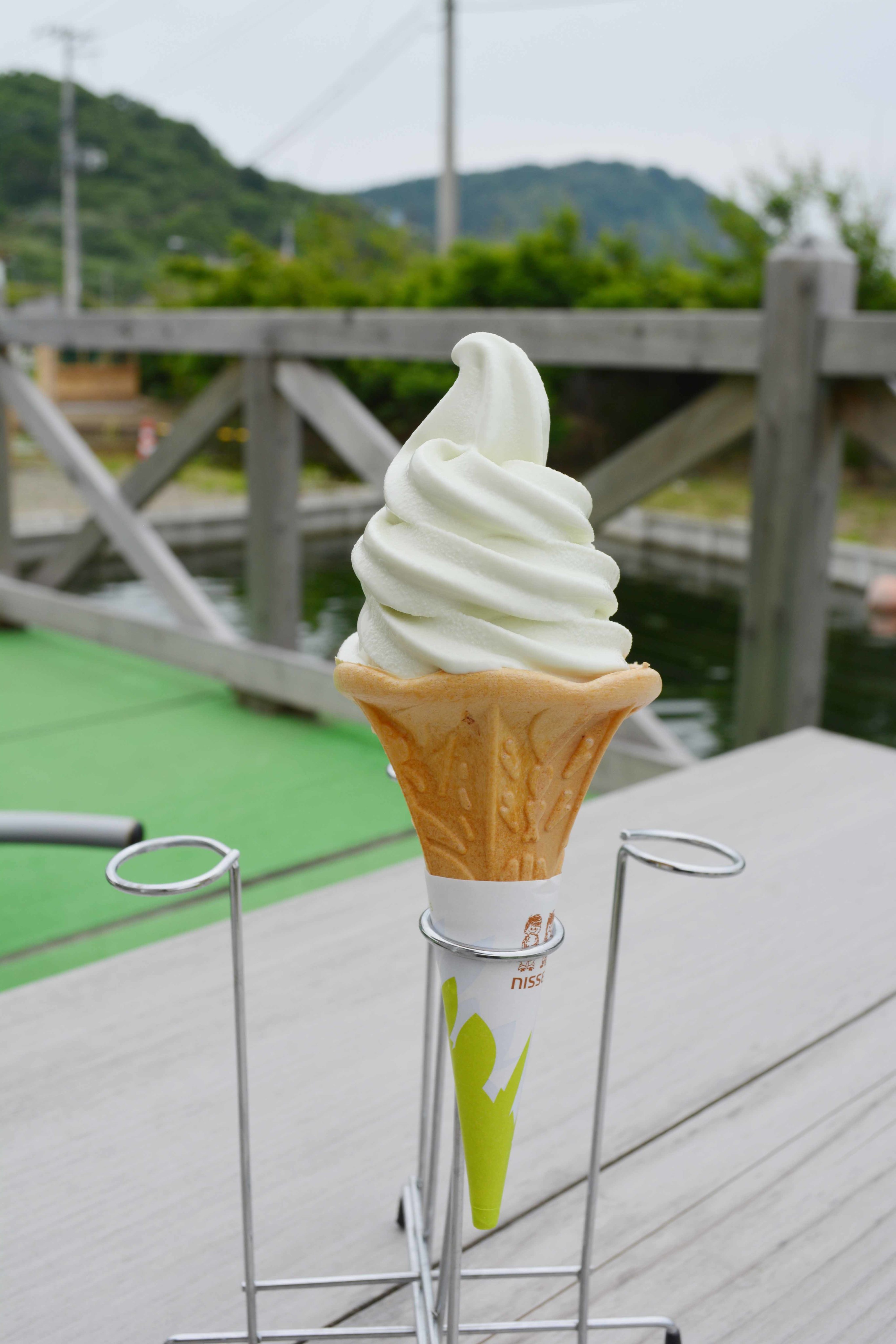 締めはわさび入りのソフトクリーム。わさびの風味となめらかで甘いソフトクリームがマッチしてgood!皆さんにもぜひ味わっていただきたいです。