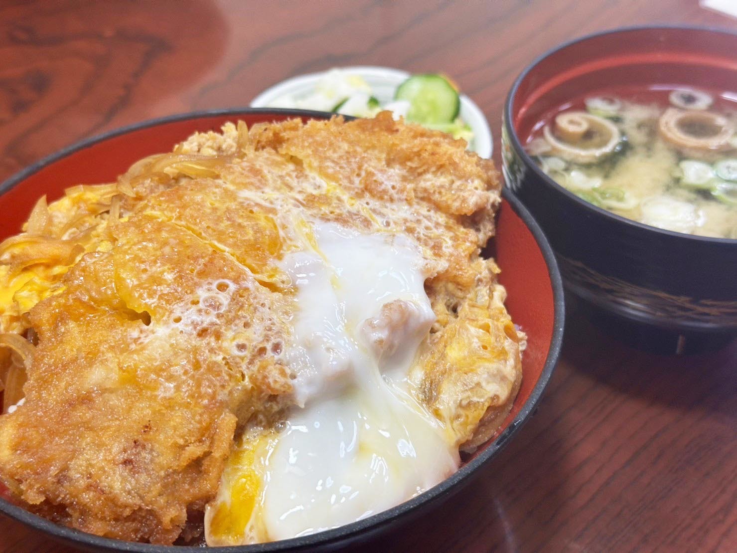 そして、お腹に余裕があったらぜひ食べていただきたいのが「かつ丼」。揚げたてサクサクのとんかつに自家製のつゆ、とろとろの卵が高柳産コシヒカリの熱々ご飯と合わさり、こちらもおすすめの一品です。