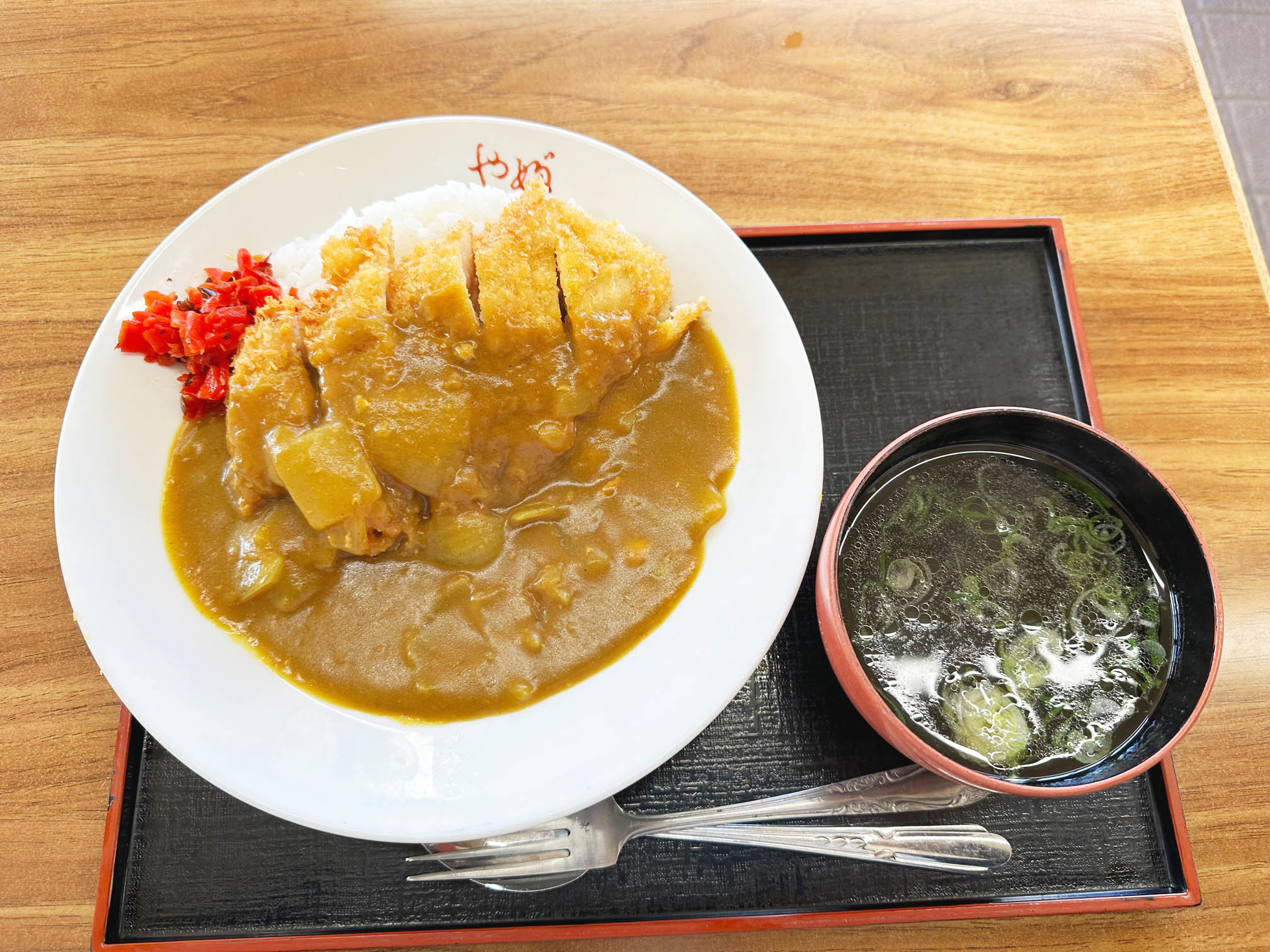 そして、そのおいしいカレーに揚げたてサクサクのトンカツをトッピングした「カツカレーライス」を頬張る幸せなひととき。きっと午後の仕事も頑張ろうと思えますよ。