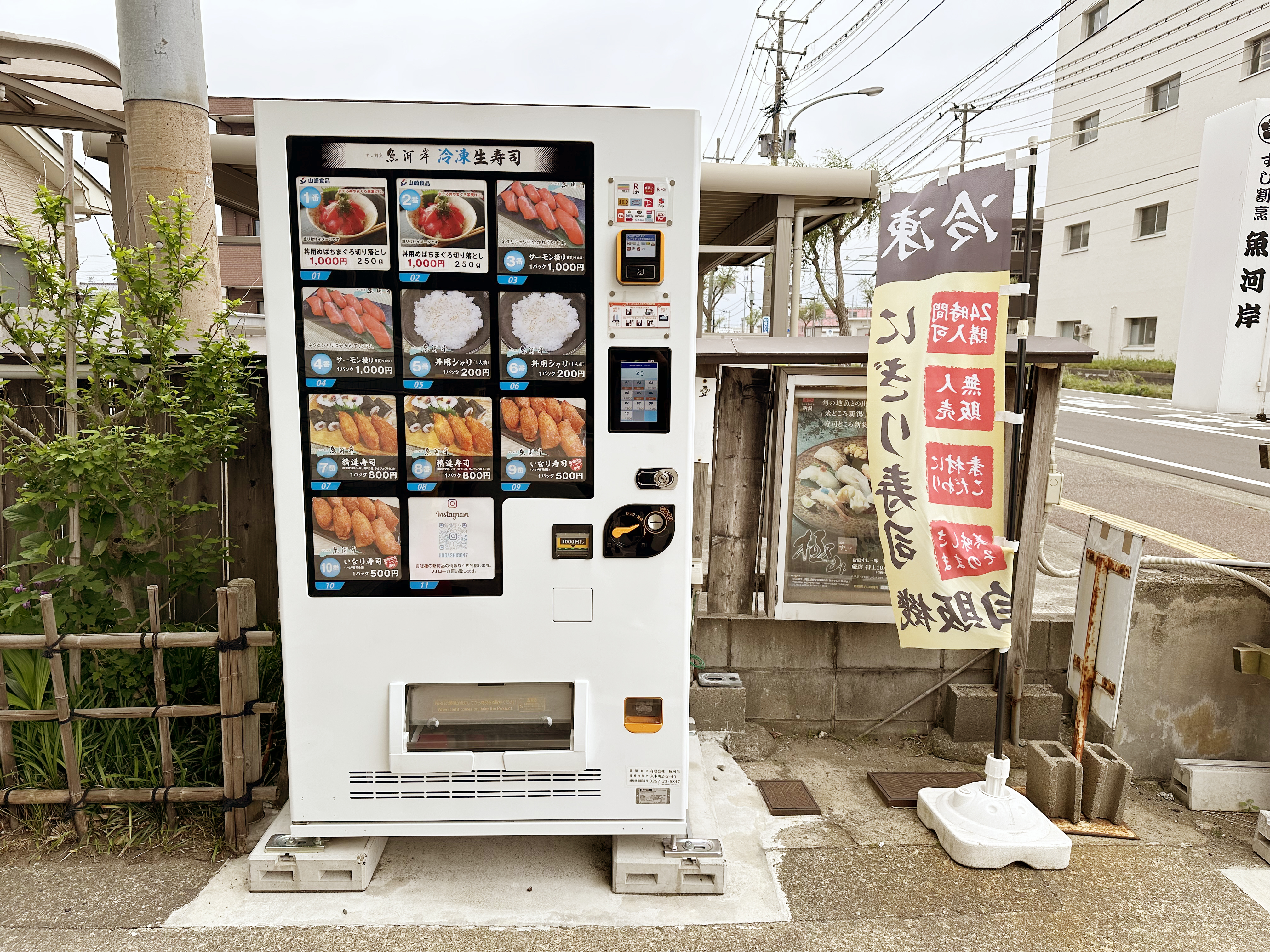 そして、魚河岸の入り口にある、「魚河岸冷凍生寿司」の自動販売機にもぜひご注目!