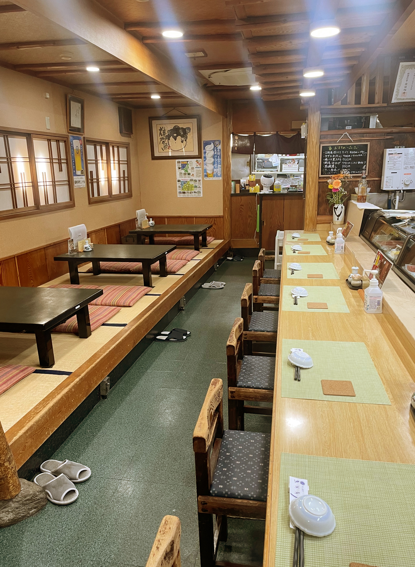 夜は、家族でおいしいお寿司をいただいたり、季節ごとの一品料理やお酒を楽しんだり。2階の広間では飲み放題の宴会や接待での利用もOK。締めにお寿司がいただけるというのは魚河岸さんならではの醍醐味です。