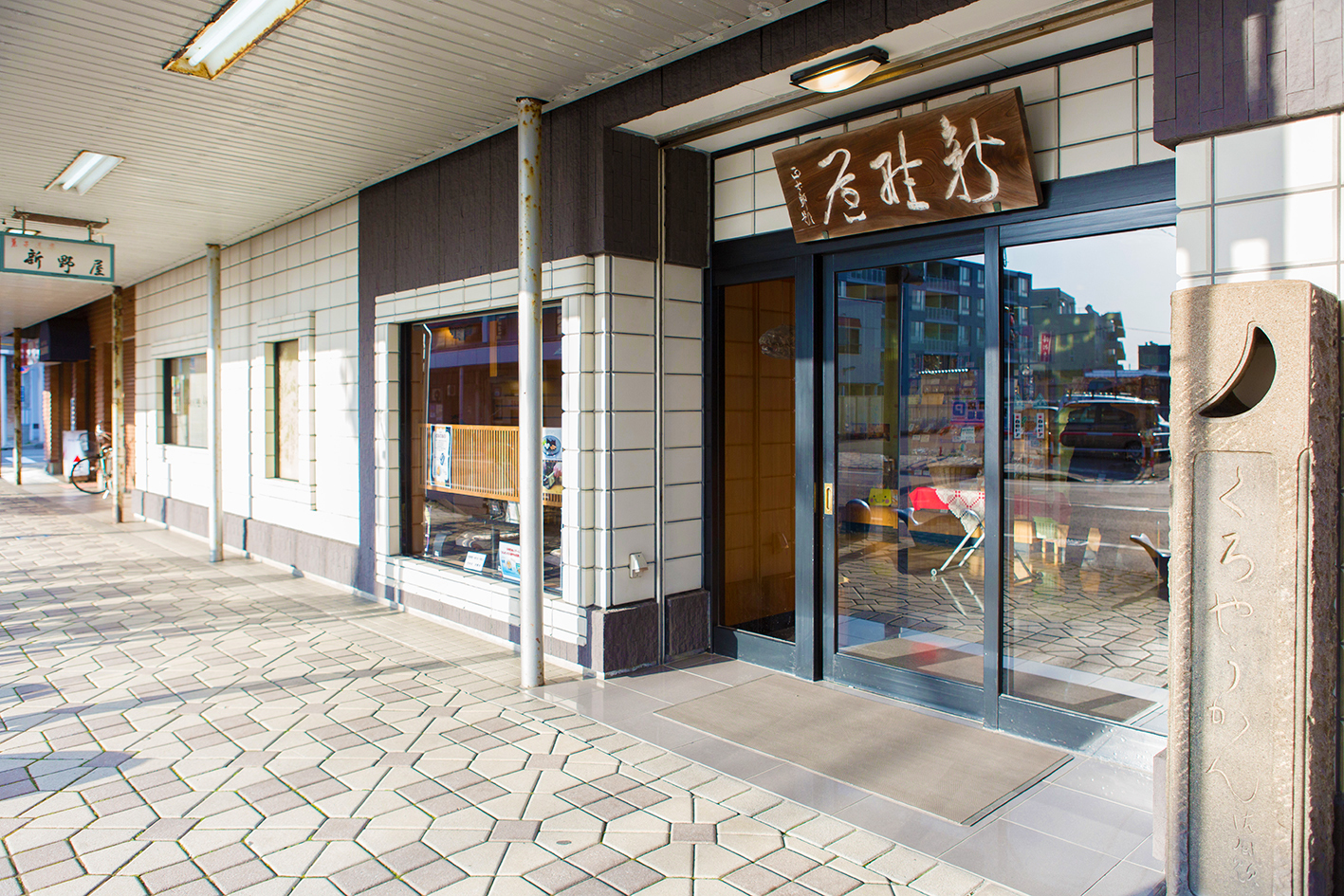 駅前通りを少し歩くと「くろやうかん」と描かれた美しい文字の石