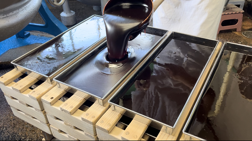 一子相伝で伝えられる、くろ羊かんは、沖縄産の黒砂糖と北海道産