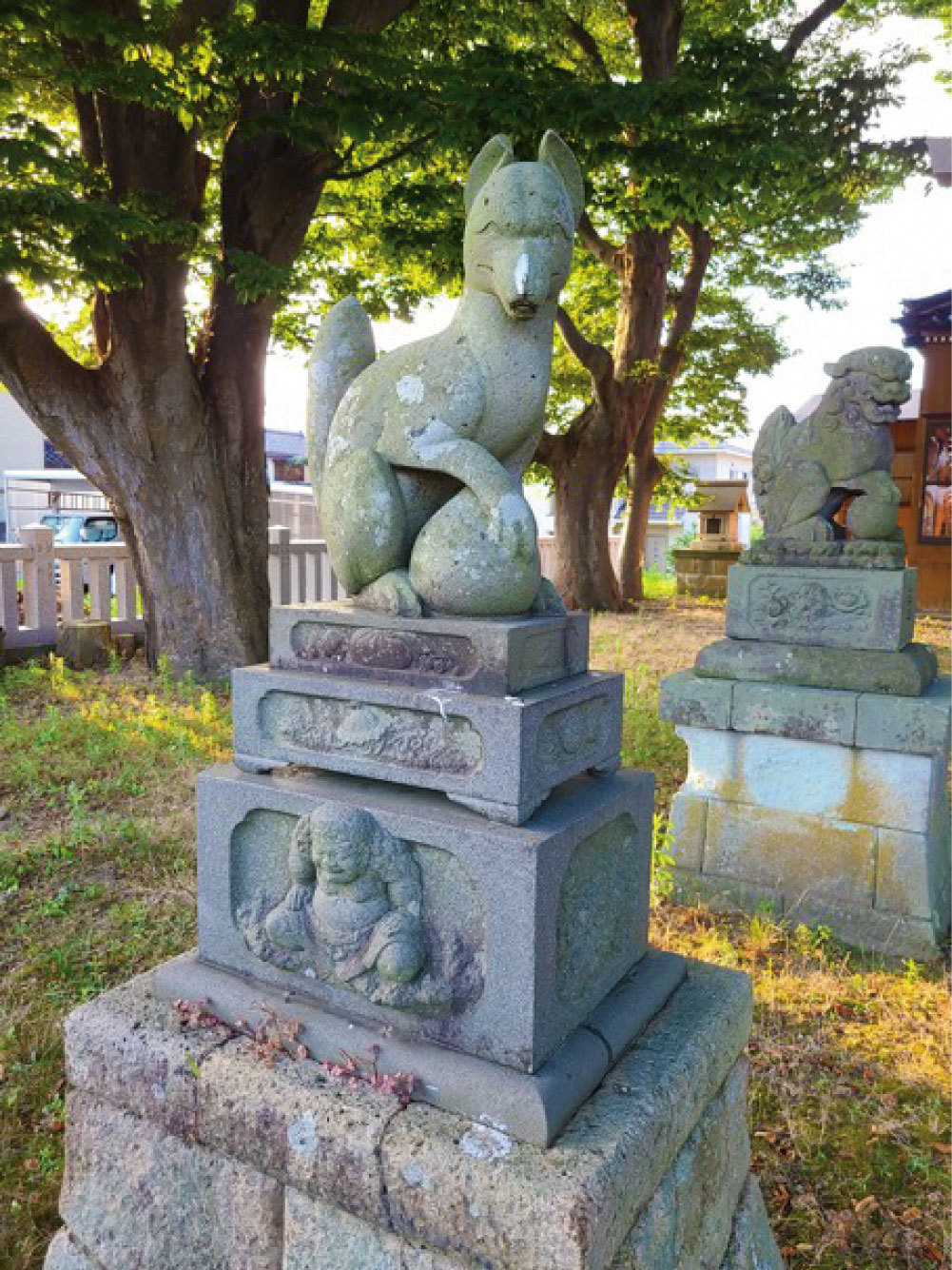 ここまでくると、神社の獅子狛犬などの範疇を遥かに超えた、オブジェと言っても過言でない。ちなみに社殿側にある狛狐は、柏崎市が誇る彫刻師小林群鳳の作。同じ悪田村に生まれた、正統派と異端派の二人の天才の作品を見比べてみるのも良いだろう。