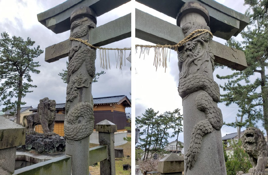 二の鳥居となる双龍鳥居(竜紋鳥居)は、多くの神社を有する東京でも、品川神社、馬橋(まはし)稲荷神社、高円寺境内稲荷社の三社にしか無く、「東京三鳥居」と呼ばれる貴重な鳥居。パワースポットとして通目され、各メディアにも取上げられるものなのだが、これが柏崎市に存在するから驚きだ。