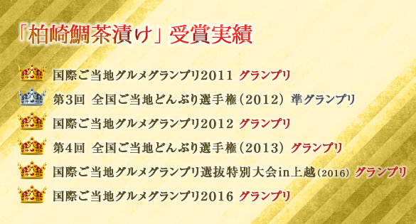 柏崎は約42kmの海岸線をもつ海のまちで、複雑に入り組んだ岩場のリアス式海岸は良好な漁場として知られています。特に笠島沖には鯛の産卵場があると言われています。 そのおかげで柏崎は県内有数の鯛の水揚げ量を誇り、昔から鯛料理を提供するお店が多くありました。そんな鯛料理で柏崎を盛り上げようと数年前に組織されたのが「鯛プロジェクト」。地域が一体となって『鯛めし』と『鯛茶漬け』の研究を重ねてきました。2013年には「全国ご当地どんぶり選手権」で柏崎の鯛茶漬けがグランプリを獲得し、柏崎を代表する名物グルメとなりました。 現在は「柏崎鯛茶漬け」を目的に多くの方が柏崎を訪れています。