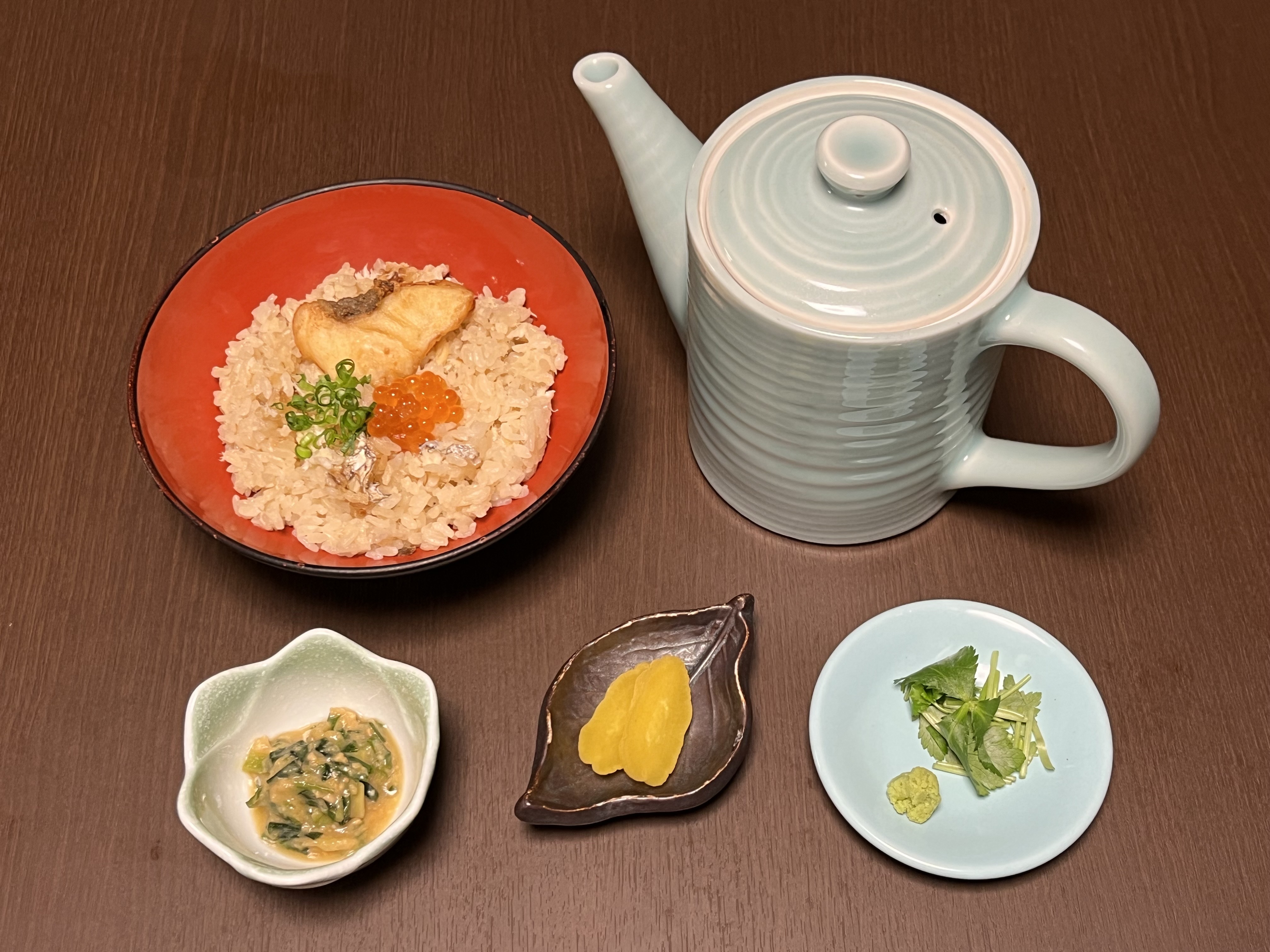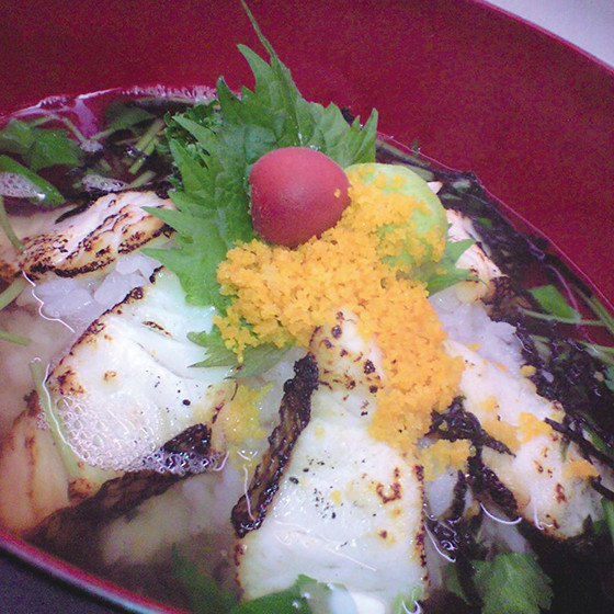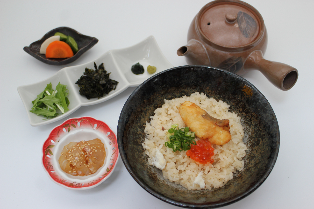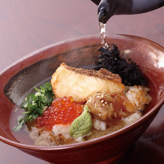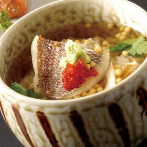 鯛茶漬けセット: 1,500円(税別) ※キングサーモン西京焼き、茶わん蒸し、漬物付 鯛茶漬け単品: 900円(税別) ※単品はランチのみ |